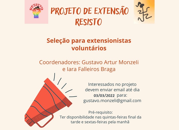 Seleção de extensionistas voluntários para o Projeto de Extensão Resisto